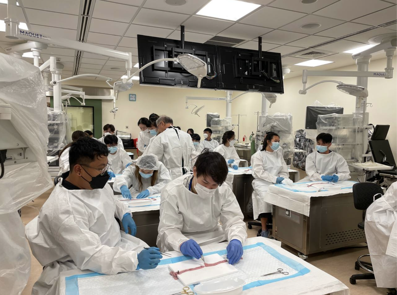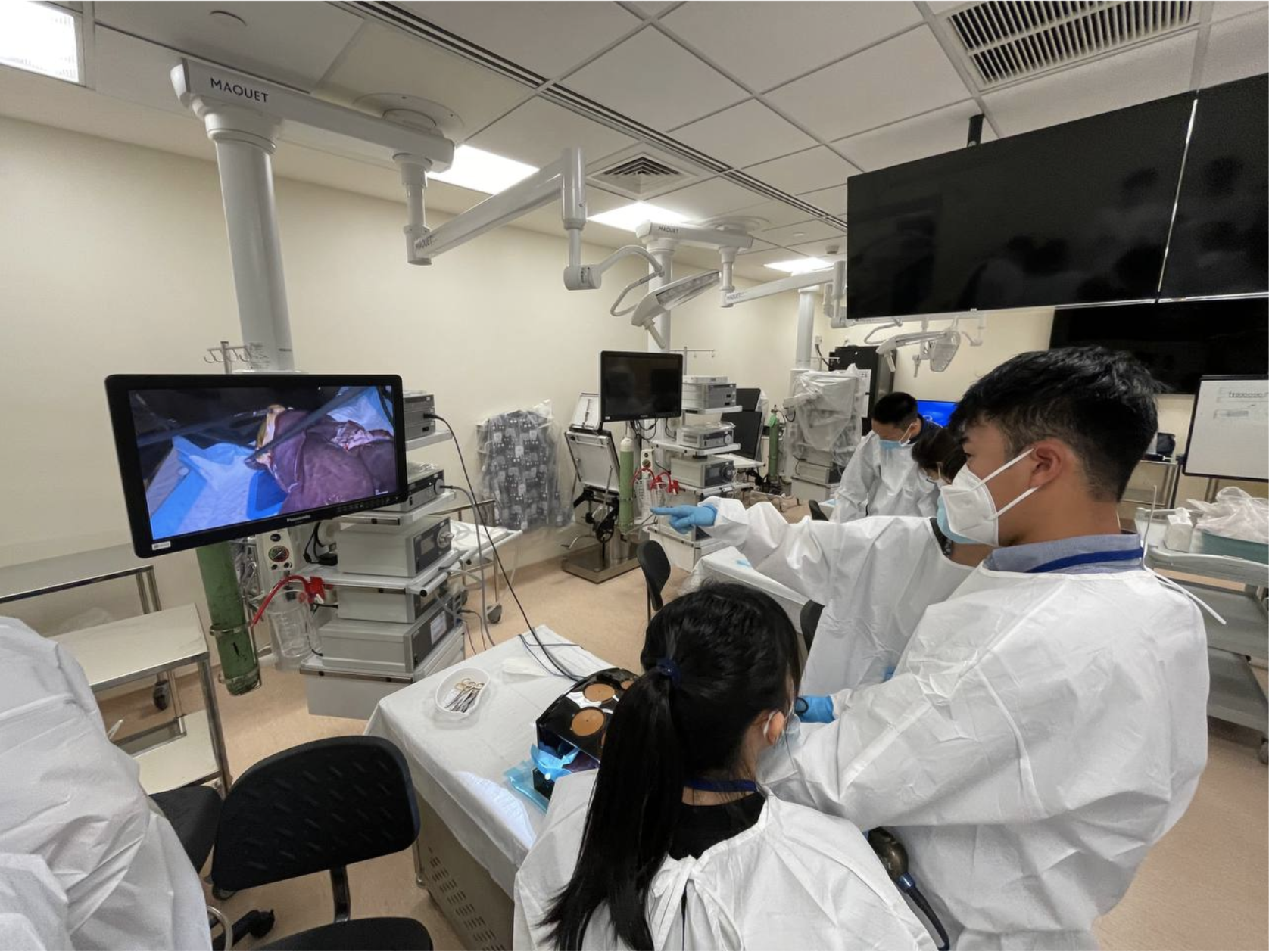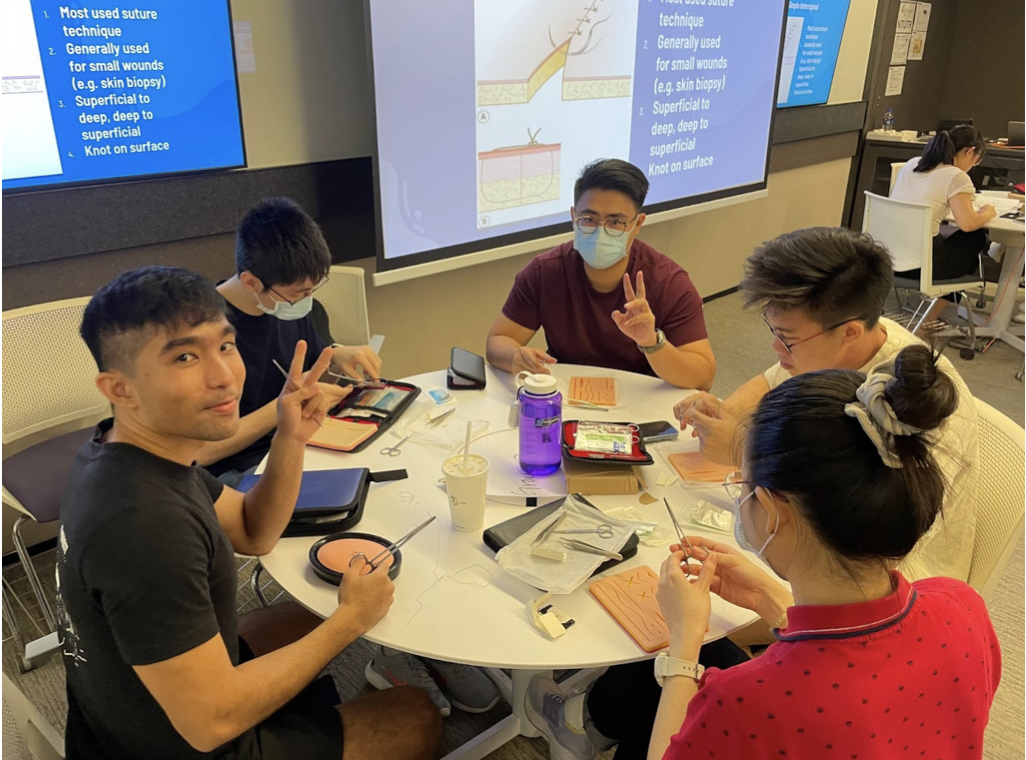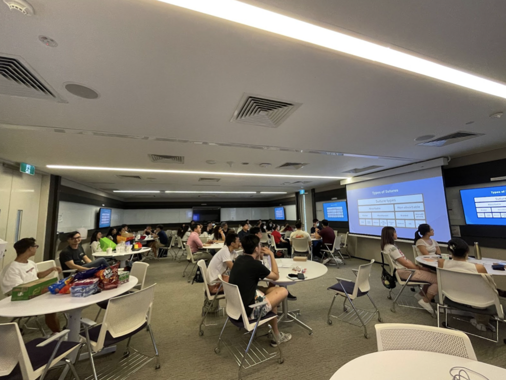 For more proficient medical students, we hold advanced suturing workshops in conjunction with Khoo Teck Puat Hospital and Ng Teng Fong Hospital (JurongHealth Simulation & Clinical Education Centre). These workshops teach advanced surgical techniques such as surgical hand ties, laparoscopic procedures, and anastomosis methods. It provides medical students a rare opportunity to carry out surgical procedures and develop their interest in surgery.