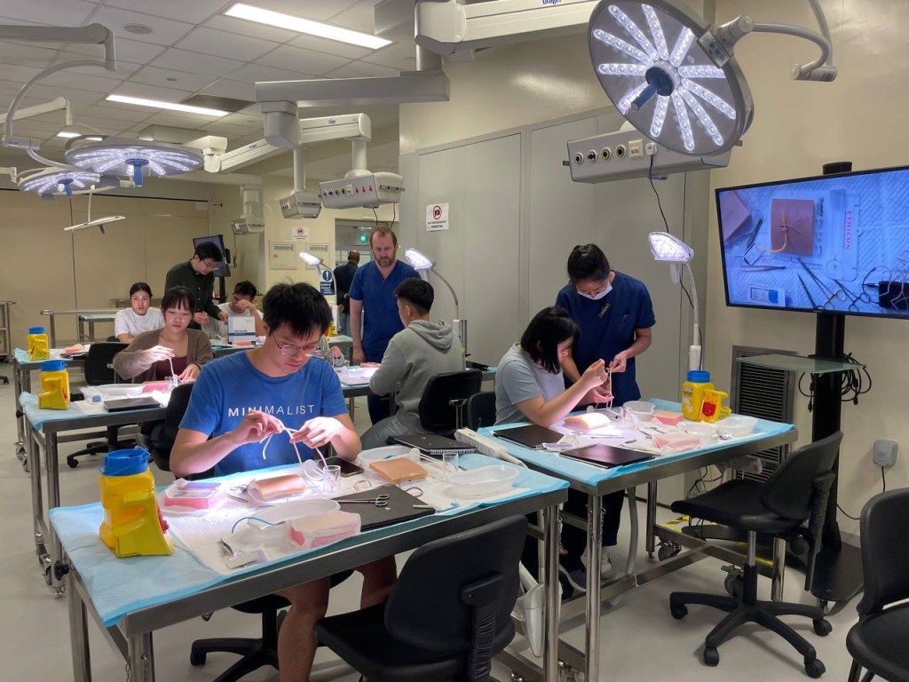The Advanced Suturing Workshop, held annually, has consistently been a resounding success among students eager to further develop their surgical skills. This workshop is exclusively available to individuals who have demonstrated their commitment to strengthening their foundational surgical knowledge by attending previous SMSANZ Basic Suturing Workshops or similar events organised by their universities. Past collaborations have included partnerships with doctors from Khoo Teck Puat Hospital, where participants were instructed in advanced surgical techniques, surgical hand ties, and laparoscopic procedures.